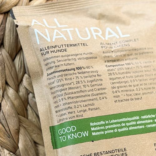 Das Fleisch ist genau deklariert und gibt dem Tierfreund die Möglichkeit, deutlich zu erkennen, was sein Liebling bekommt. Es wird ausschliesslich frisches Fleisch bzw. Fleischmehl verarbeitet, welches für die menschliche Ernährung zugelassen ist.